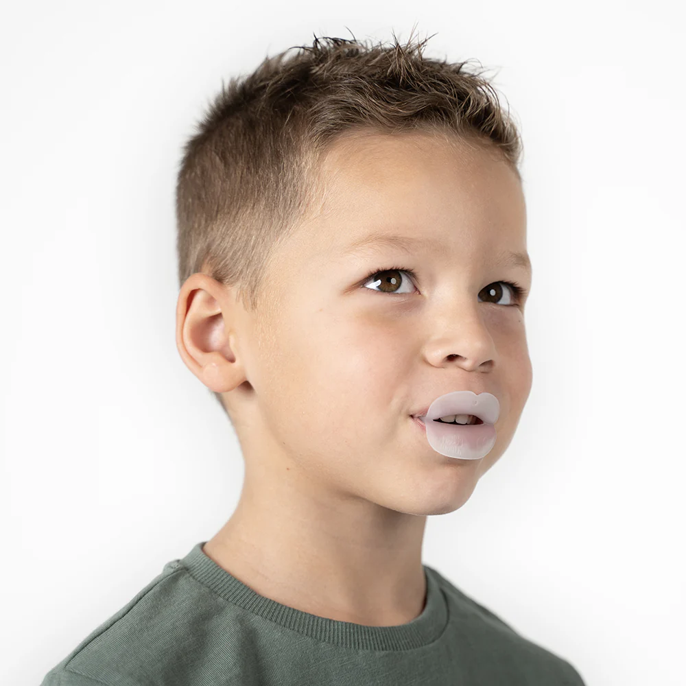 The Froggymouth device is used for 15 minutes a day whilst watching television to maintain a horizontal lingual plane. This helps stimulate the circuits managing automation, rather than those controlling voluntary movements. It makes your tongue position and nasal breathing rehabilitations durable by completely inhibiting the primary swallowing sequence.